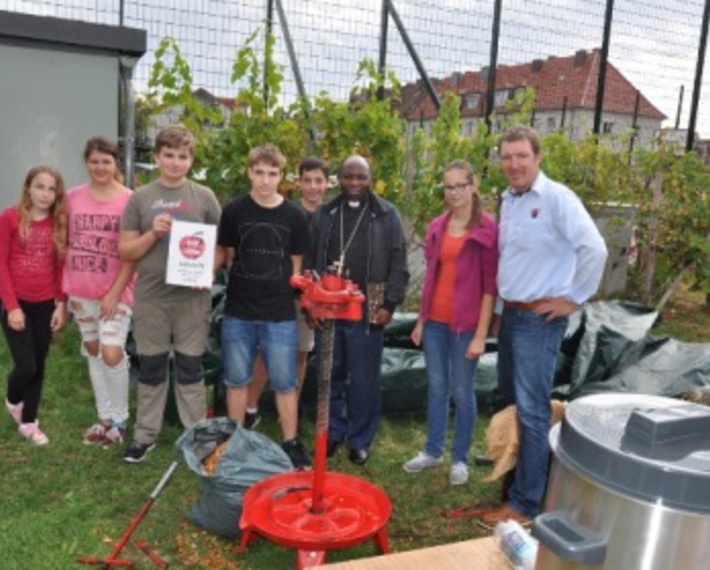 Am Vinzentinum gibt's eine Schülerfirma, den SAFTLADEN. Seit Mitte September 2016 produziert die Firma aus Äpfeln von Streuobstwiesen naturbelassenen Apfelsaft und verkauft diesen im sogenannten Bag-in-Box-System. Das Obst liefern - in großen Mengen - Schülereltern.