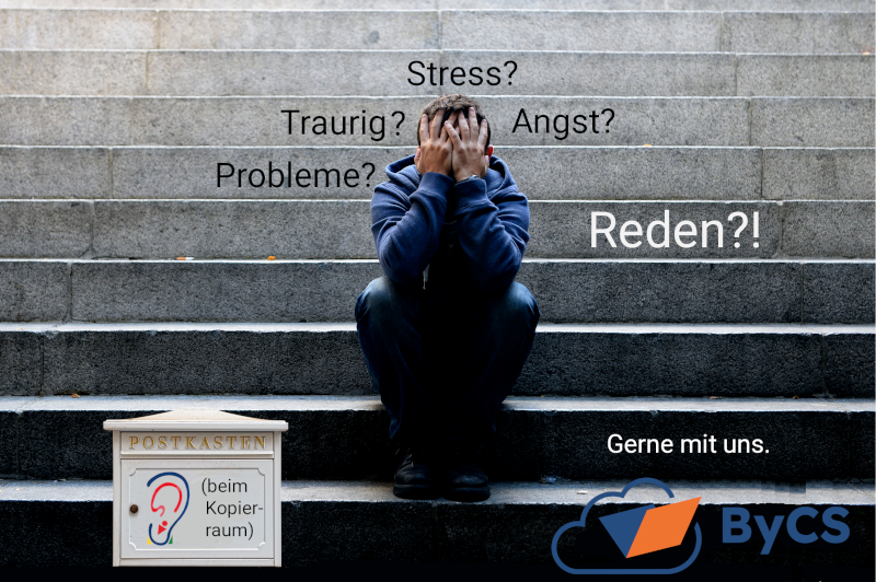 Du gehst auf bycs.de nach "Mebis-Lernplattform" und dort auf "Offenes Ohr", wählst jemanden aus dem oO-Team aus und schreibst etwas: Dein Problem, wie es dir geht. Oder dass du ein persönliches Gespräch brauchst. Das geht alternativ auch über den Briefkasten in der Ecke am Kopieraum.